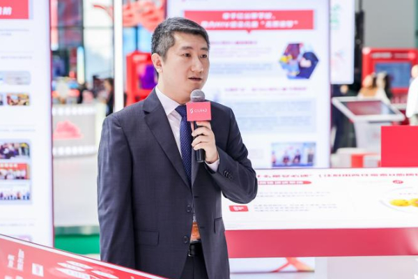 “本次进博会吉利德展台包括了企业介绍展示区、创新产品展示区、多方合作展示区、医学信息中心四大区域,全面展示吉利德入华以来在商业运营、产品引入、本土实践、创新实力等方面的重要成果。” 在开馆日当天,金方千亲自带领现场观众参观展台,为大家讲述吉利德本次进博会的亮点内容。