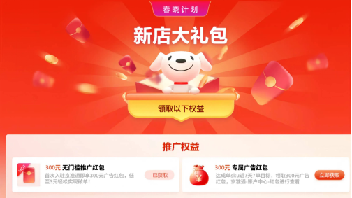 第二步:拿补贴投广告,快速破单。京东宣布将在今年为品牌和商家投入至少10亿广告金补贴,上不封顶,用来支持品牌和商家通过广告投放实现精准营销,快速提升商品曝光度和销售额。具体来说,新商家入驻京东后,可以在京麦领取“新店大礼包”,其中包含300元无门槛广告红包、免费的经营工具等价值近万元的新商权益,商家通过广告红包可以一键开启全站营销,快速提升店铺曝光,助力快速破单。