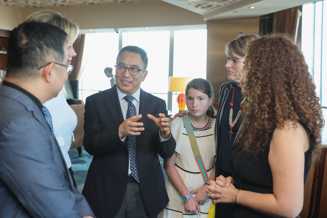 2025年5月14日下午,在中拉论坛第四届部长级会议期间,受哥伦比亚总统佩特罗委托,哥伦比亚贸易、工业和旅游部长西埃罗·鲁辛克和哥伦比亚科技创新部长耶塞尼亚·奥拉亚在哥伦比亚驻华大使塞尔希奥·卡夫雷拉的陪同下分别与科兴集团总裁兼CEO尹卫东、副总裁孟伟宁、拉美国际组织总监辛蒂亚等见面并深入探讨,共同就科兴集团与哥伦比亚首都波哥大市政府合作的BogotáBio疫苗工厂项目进展交换了意见,一致同意尽快推进项目落地。