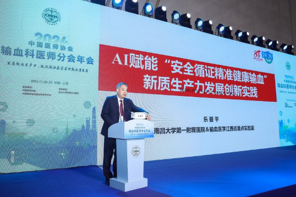 2024年中国医师协会输血科医师分会年会上,乐爱平教授作主旨报告