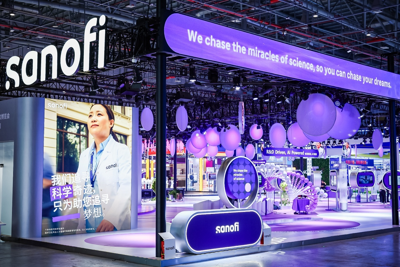 此次进博会,赛诺菲布局“研发驱动,AI赋能”、“追寻科学奇迹”、“助力健康中国”三大展区,全方位呈现赛诺菲在引领科学创新、满足健康未尽之需,以及深化中国布局等方面的丰硕成果与卓越成就。