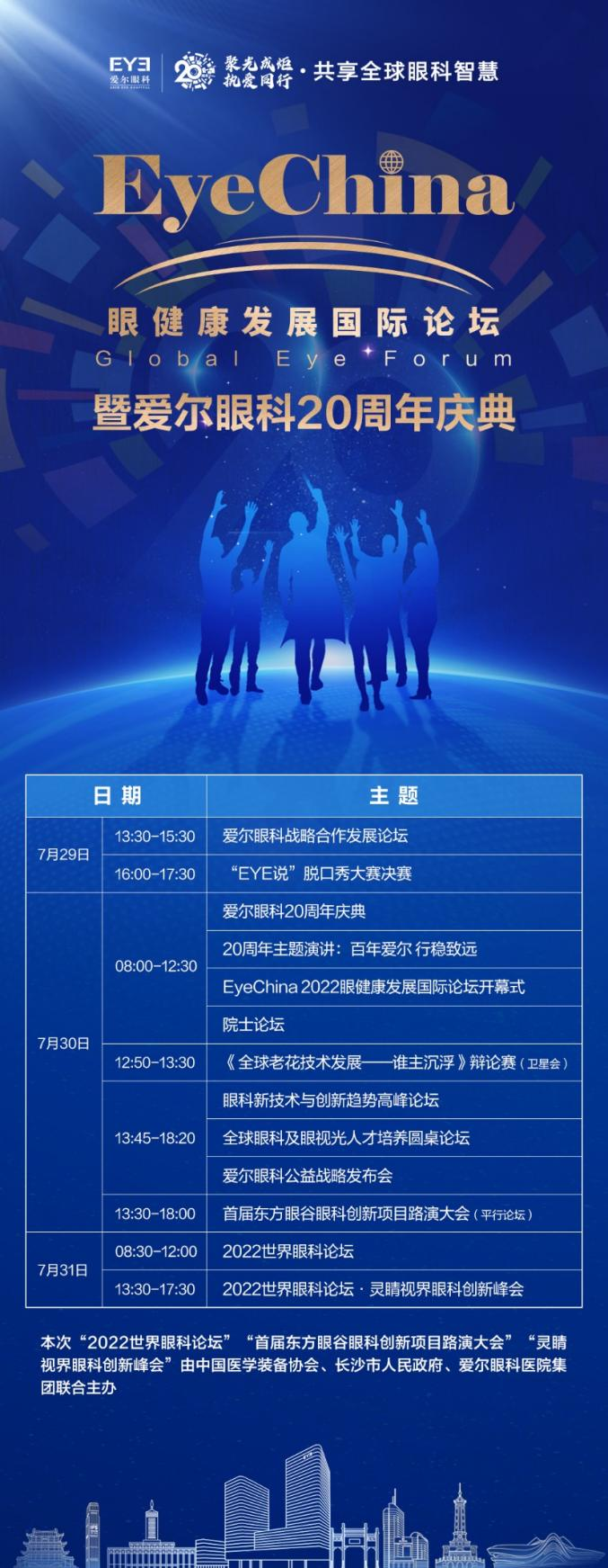 7月29日-31日,EyeChina2022眼健康发展国际论坛暨爱尔眼科20周年庆典将在长沙举行。