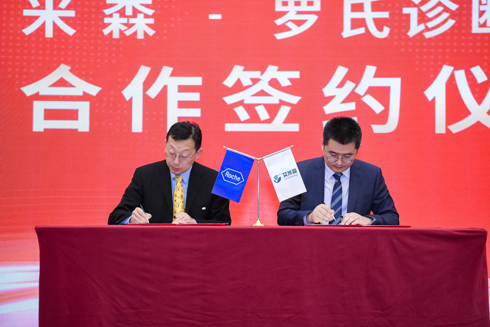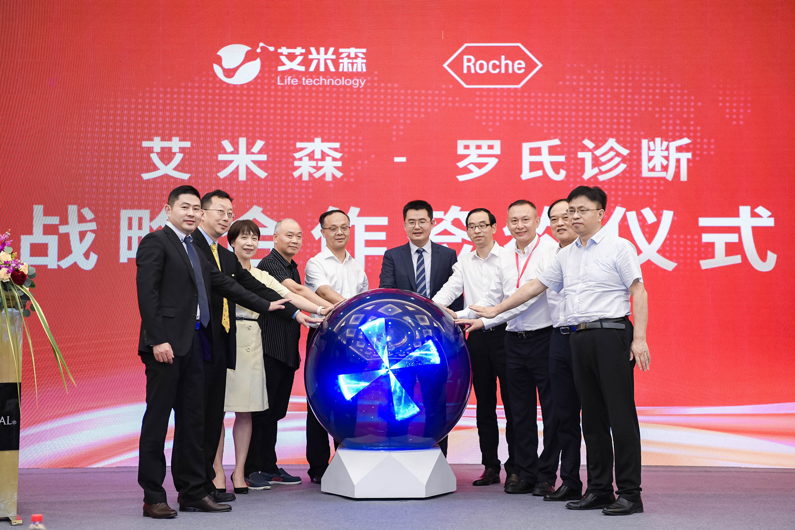 8月5日,由武汉艾米森生命科技有限公司(以下简称“艾米森”)与国际知名企业罗氏诊断举行的“聚力前行 同心致远”战略签约仪式在湖北省武汉市举行。双方在肿瘤早筛早诊领域达成深度战略合作,将共同推进癌症早筛和早诊早治全面推广和落地,制定一条国际化和本土化双向并行发展的商业化道路,加速健康中国战略的实现,造福患者。