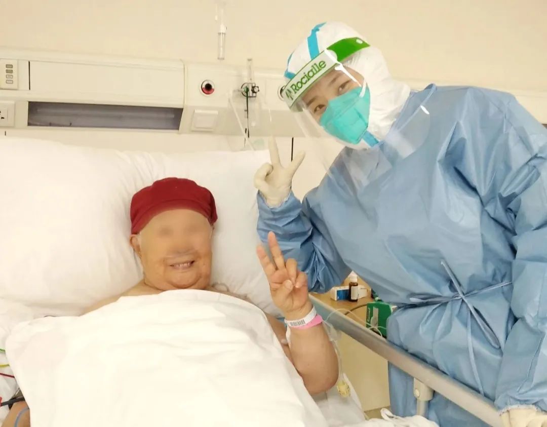 ▲94岁的李奶奶病情好转,出院前与护士合影