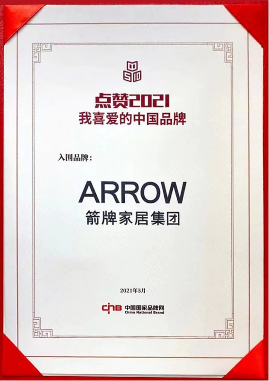 箭牌秉承“箭牌家居,生活智慧”品牌主张,从智慧生活出发,满足用户对更高品质人居体验的追求;由中国品牌日发起的“点赞2021我喜爱的中国品牌奖”,在经过一个多月的点赞互动后,全面展示出箭牌家居的品牌魅力,收获了众多国内外消费者的支持与喜爱,再度荣膺“我喜爱的中国品牌”美誉。