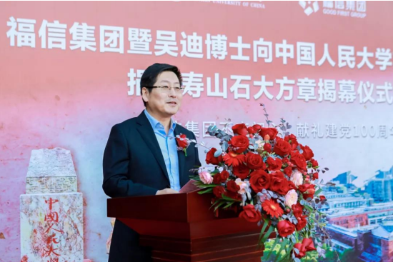 10月24日下午,福信集团暨吴迪博士向中国人民大学苏州校区捐赠寿山石大方章揭幕仪式在中国人民大学苏州校区举行。