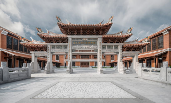 该项目在实际工程设计及施工方面存在不少的挑战与困难,如大跨度楼面和屋面,造型复杂、手工绘图浮雕的精度把控困难、屋盖结构楼层高且坡度大、木作构件种类繁多,安装精度需保证、高、重石木质牌坊,吊装难度大、外立面仿古建筑施工难度大等一些列问题与挑战。该工程全面推广应用了“建筑业10项新技术”中的8个大项24个小项,自主创新技术3项,取得国家专利12项。
