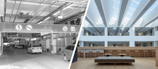 2020年5月份之前,这里还是北京上世纪90年代建成的北五环汽配城,陈旧、拥挤、杂乱。响应北京市政府提出的“疏解非首都功能”政策,低端产业聚集的汽配城被腾退,龙湖集团接手进行整体空间改造与后续运营。