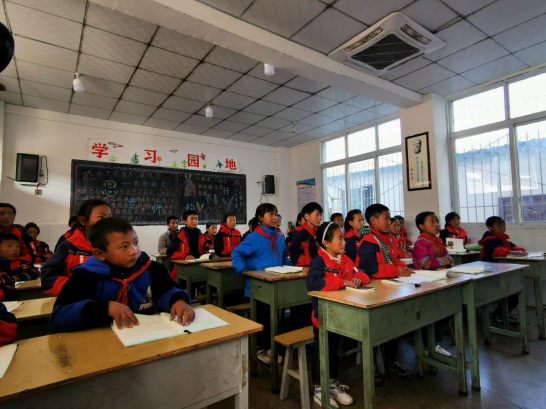 四川省凉山市昭觉县三岔河乡中心小学学生们正在认真上课