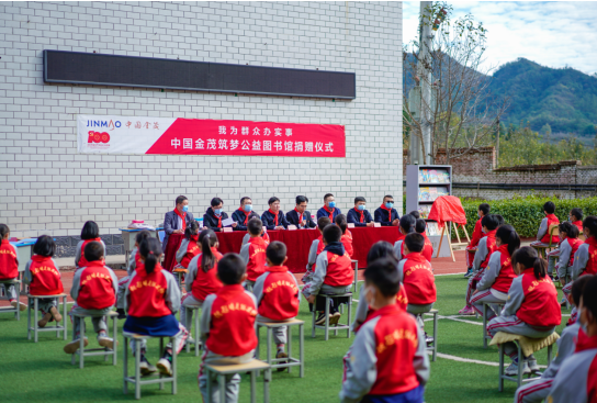 自2014年起,金茂积极组织员工参与“圆梦行动”,与贫困学生建立一对一帮扶关系。以筑梦公益图书馆为载体,携手业主、合作方、员工等多方力量,为偏远地区儿童募集书籍与助学金。2021年,金茂先后向河北平山县、内蒙古阿鲁科尔沁旗捐赠4座"筑梦公益图书馆",用知识、教育改变孩子们的命运。截至2021年底累计在西藏、青海、内蒙古、四川、贵州等地捐建公益图书馆27座。