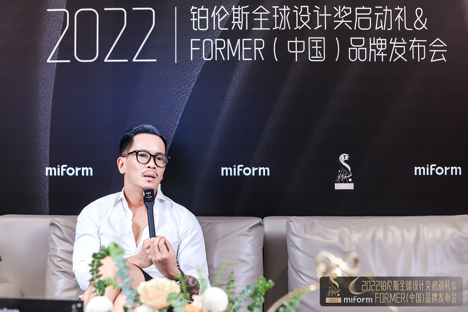 6月6日,2022铂伦斯全球设计奖启动礼&FORMER(中国)品牌发布会举行。RAM共和都市创始人、创意总监黄永才在接受采访时表示,一个优秀的设计师在当前时代下会有不一样的思考,能够洞悉消费模式和人居生活方式的发展变化,对社会发展起到推动的作用。