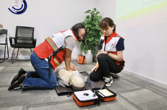 (南京市红十字会为美置服务员工进行应急救护培训)