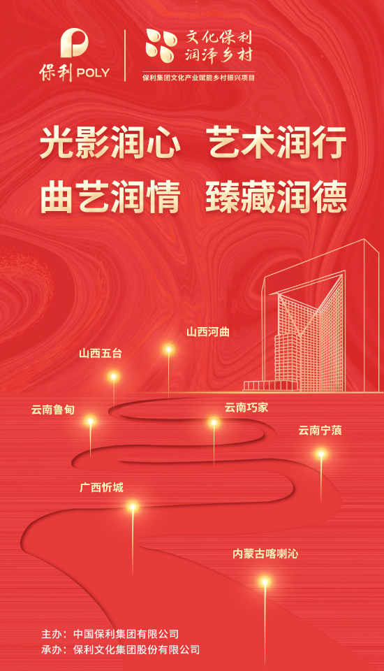 近日,保利集团正式启动“文化保利 润泽乡村”文化产业赋能乡村振兴项目,旨在探索文化产业赋能乡村振兴“保利模式”和“保利品牌”。该项目由中央宣传部国家电影局及电影数字节目管理中心指导,保利集团主办,保利文化及保利集团定点帮扶的山西河曲、五台,云南鲁甸、巧家、宁蒗,广西忻城,内蒙古喀喇沁等7个县旗政府联合承办,涵盖电影放映、艺术教育、特色曲艺、公益拍卖、直播带货等形式。