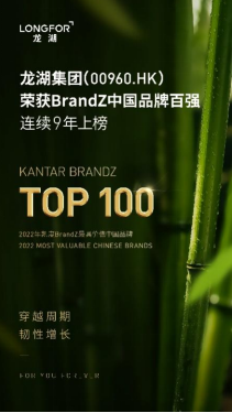 近日,“2022年凯度BrandZ最具价值中国品牌100强”榜单发布,龙湖集团以17.47亿美元的品牌价值登上榜单,位列第96位。这已是龙湖集团连续第9年上榜,反映出市场对其品牌价值的长久认可。