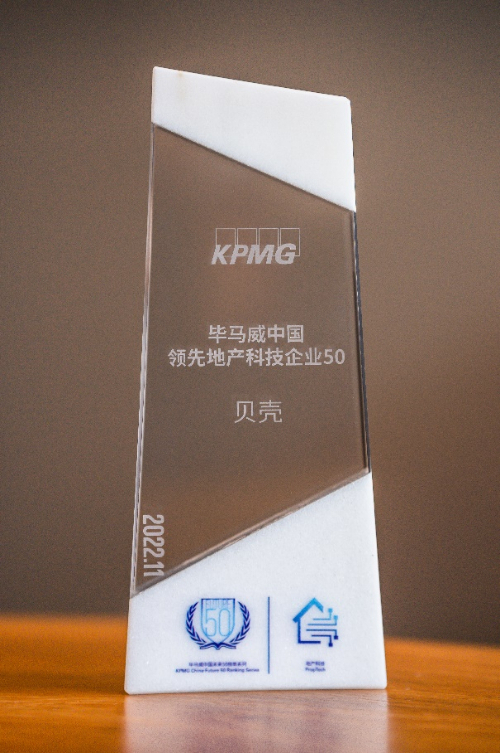 11月9日,在上海进博会现场,毕马威发布了2022年度(第二届)“毕马威中国领先地产科技企业 50”报告,并正式发布了年度毕马威中国领先地产科技企业50榜及地产科技新锐企业榜。贝壳上榜。