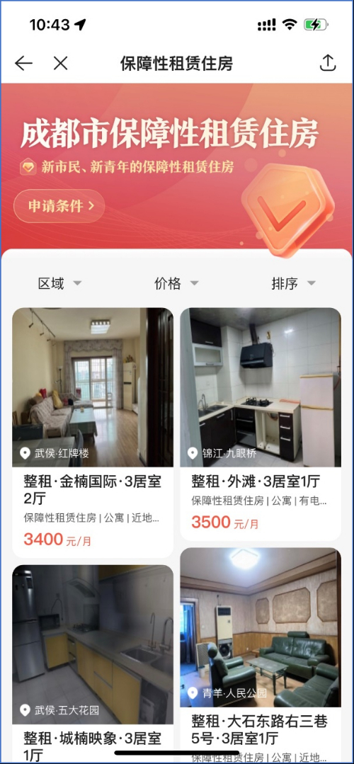 图:贝壳APP面向成都地区上线的保障性租赁住房频道