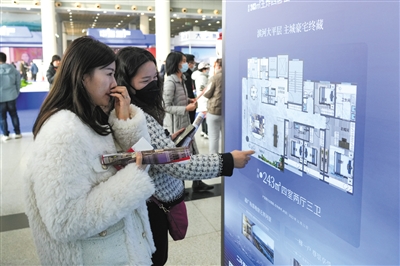 2月8日,购房者在2023齐鲁(济南)春季房地产展示交易会现场了解房屋信息。新华社记者 朱峥 摄