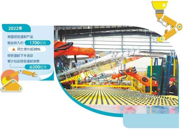 数据显示,2022年,我国绿色建材产品营业收入约1700亿元,同比增长超20%;绿色建材下乡活动累计拉动绿色建材消费超200亿元。