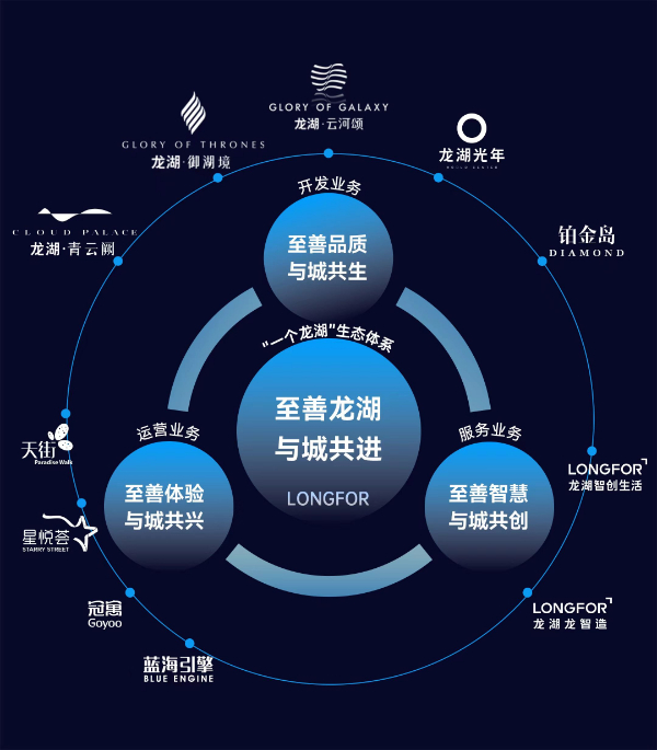 之于城市,龙湖演绎出开发业务的“至善品质,与城共生”、运营业务的“至善体验,与城共兴”以及服务业务的“至善智慧,与城共创”。