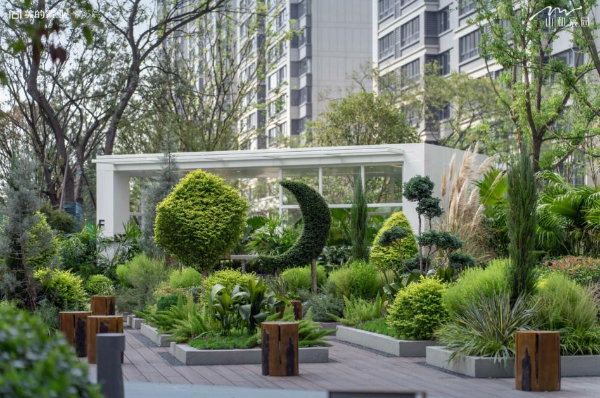 遵从“五维植物控制”准则,南京山和宸园小区创新采取了“地被地形穿插”的种植手法。以朴树、银杏、蒲葵、象耳芋等20多种符号植物的错落有致的排列设计,不仅有园艺大师定期修剪,告别审美疲劳;兼负功能性与美学的草坪坐凳、雕塑及林下座椅给业主提供互动和休闲;而“共享花房”的巧妙设计,体验框景的美好时刻,也让未来的邻里之情无限延伸。“我们的设计初衷,就是希望业主能够在小区里得到充分的放松。”设计师李敏如是说道。