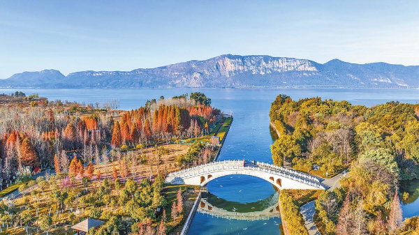 眼下正是春城的最佳观鸥季。湿地边、滇池畔,鸥翔人和,成为一道别致的城市风景。近年来,昆明市在抓好滇池沿岸违规违建整治的基础上,综合采取控源截污、精准防控、科学补水、生态增绿等措施,推动滇池全湖水质从劣Ⅴ类好转为稳定保持Ⅳ类。过去一年,滇池沿岸183个美丽乡村建设有序推进,卧龙浦古渔村、晋宁小渔村等成为网红打卡地;环滇池生态绿道建设加速,23公里的滇池绿道环草海段已向市民开放,成为市民跑步、骑行、散步的新晋打卡点。