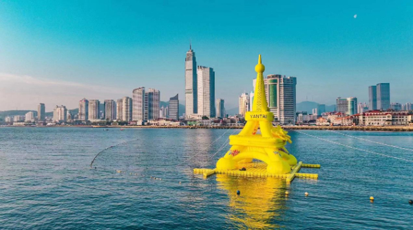 走过朝阳街,迎面而来的是伫立在烟台山门口的“凯旋门”,这是烟台国际艺术节以国际知名地标性建筑为题材的打卡坐标之一。