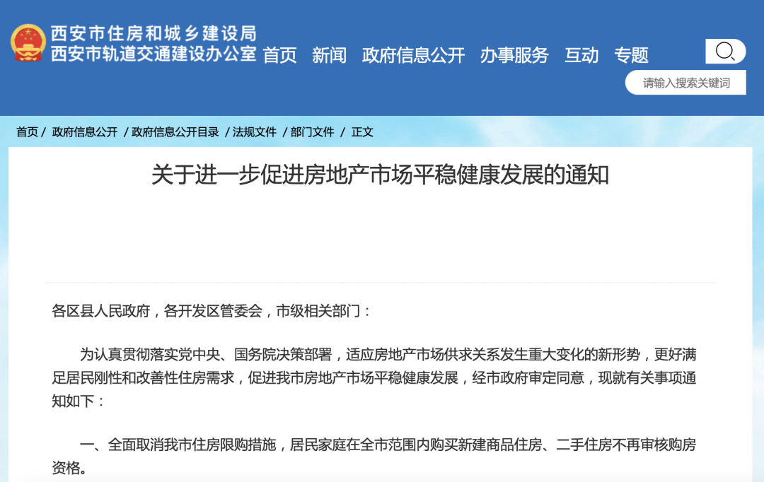 5月9日,西安市发布关于进一步促进房地产市场平稳健康发展的通知,全文如下: