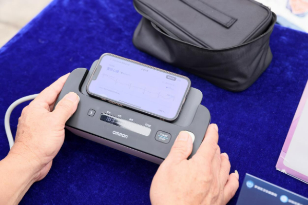 活动当天开展的以房颤为主题的患教义诊活动现场还设置了健康器械体验区,让现场的居民亲身体验欧姆龙最新的心电系列产品和智能语音管理盒子。