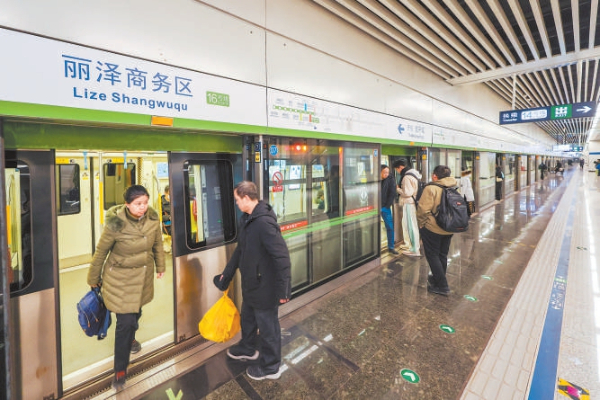 临近过年,地铁里提着行李的乘客逐渐增多。在新开通的16号线丽泽商务区站上,冯女士一家三口下车后,准备换乘14号线去北京南站,坐高铁回老家。