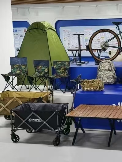 现场,各式各样的户外用品琳琅满目,吸引了众多采购商和消费者的目光。从高端的帐篷、睡袋到实用的户外桌椅、烧烤架,再到各种精美的钓具和配件,无不展现出固安县户外用品产业带的实力和潜力。这些产品不仅品质上乘、价格亲民,而且设计时尚、功能齐全,深受消费者喜爱。