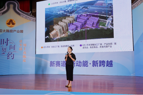 据了解,亚太陈皮产业园占地5.3万平方米,建筑面积超15万平方米,集工、商、文、旅四位一体,整合了种植、加工、仓储、生产、销售与文旅体验,形成“从田间到餐桌”的全产业闭环。目前,该项目已与310户柑农建立合作,辐射果园面积约4万亩,规划仓储能力达4500吨,预计陈皮货值超160亿元。