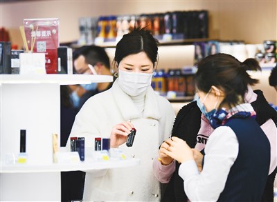 今年上半年,江西首家中欧班列进口保税品门店“南铁易购”正式营业,该门店采用“全球直采”加“保税跨境电商合作”方式,让“买全球”更便利。图为消费者在门店内选购商品。 胡国林摄(人民视觉)