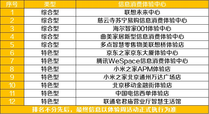 信息消费体验中心名单: