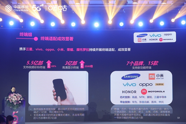 在终端适配层面,联盟近一年来积极推动各终端合作升级,目前移动网内支持视频彩铃终端达5.5亿部,同比增长69%。通过与三星、OPPO等试点合作,还成功开拓了品牌代言铃、终端主题应用商店植入等全新场景,共享业务发展红利。