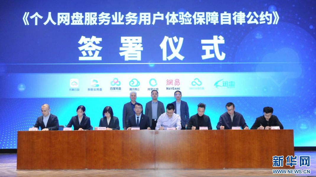 新华网北京11月17日电(宫碧莹) 为引导网盘企业进一步提升服务质量和用户感知,维护公平竞争、合理有序的市场环境,促进个人网盘服务业务健康可持续发展,在工业和信息化部指导下,中国互联网协会、中国信通院组织国内主要网盘企业制定了《个人网盘服务业务用户体验保障自律公约》(以下简称《公约》),并于11月17日在京召开签署发布会,百度网盘、腾讯微云、天翼云盘、和彩云、阿里云、迅雷云盘、360安全云盘和网易网盘等首批8家网盘企业现场共同签署《公约》。