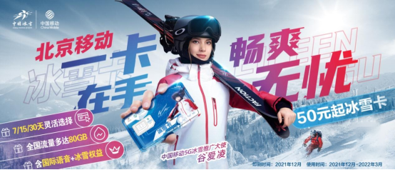 “中国移动冰雪卡”是北京移动助力国家推广冰雪运动打造的专属产品,卡面以中国移动5G冰雪推广大使谷爱凌为设计元素,颇具收藏价值的同时,更是为短期在京用户切实解决通信需求。