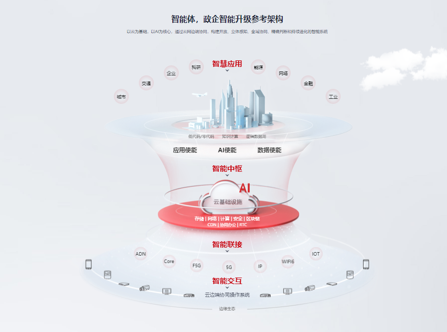以人工智能+创新服务的形式,华为针对不同发展阶段的企业提供不同的服务。对于尚处于自动化向信息化转型的企业,华为联合国内最好的合伙伙伴提供各类生产、财务、管理系统,帮助企业摆脱传统业务经营方式,向信息化、现代化转变;对于已有一定信息化能力的企业,华为提供优秀的人工智能、算法、大数据平台,为企业提供智慧园区、智慧工厂、智能制造等高端服务项目,多层次、立体化地为企业量身打造最合适的解决方案