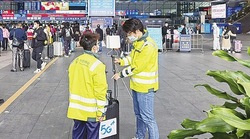 这暖心的一幕离不开广东移动开展的“温暖回家路”网络专项保障行动。车站内通信保障人员通过部署4G/5G新型室分系统,一点接入辐射全频段全制式,提供超过5万人的大带宽、广连接业务能力。通过创新网络保障技术,加强重点交通枢纽网络保障,推出一系列便民暖心服务,通信人全力以赴为旅客回家之路护航。