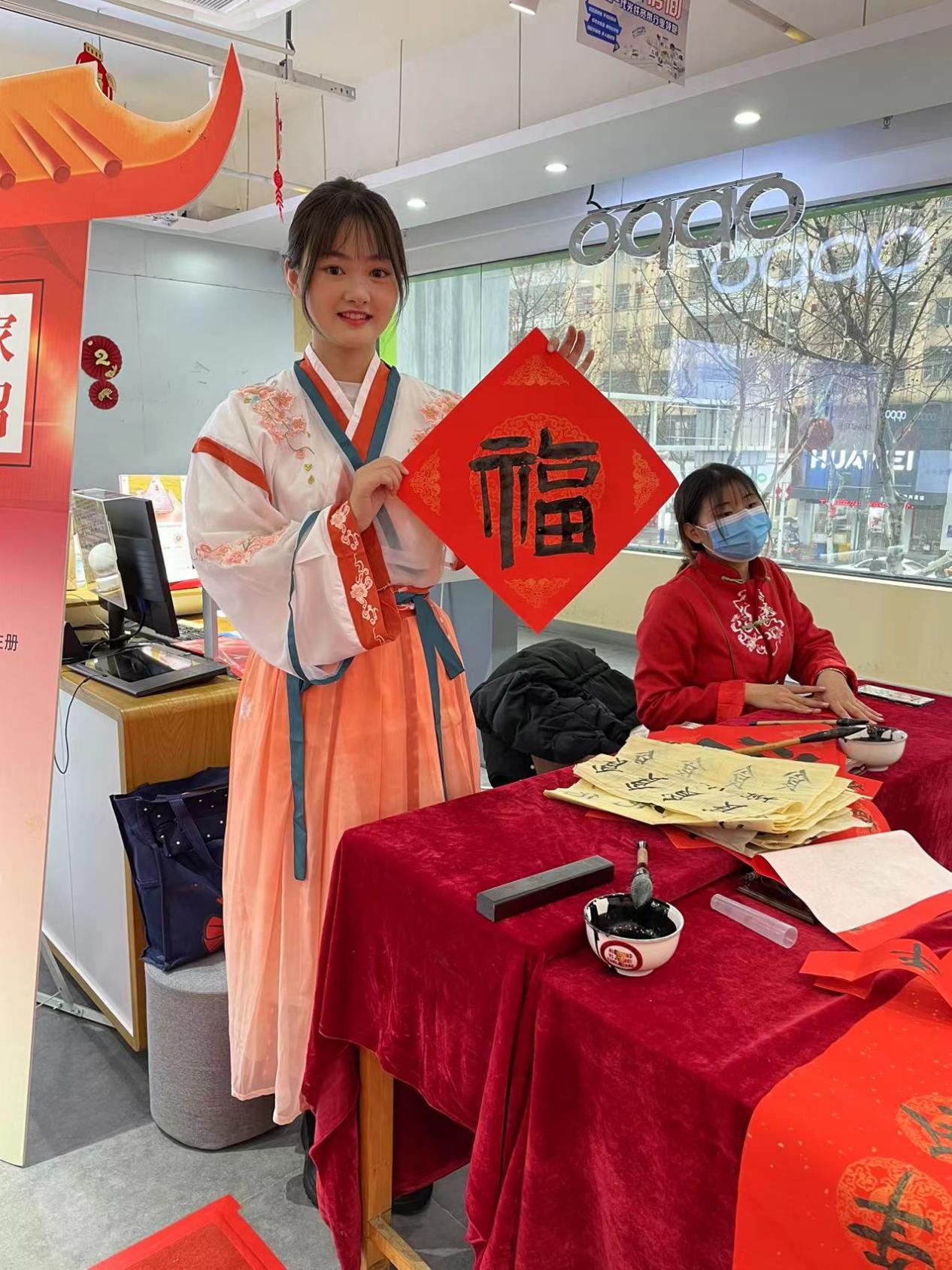 贴起春联过新年。在化妆等待间隙,安徽电信还设置了书法专区,由马慧宾等知名书法家现场泼墨,参与活动的朋友可以将新春的祝福用文字带回家。一副副写满祝福的春联,散发着笔尖上历久弥新的年味儿,烫金的文字与火红的纸张,洋溢着满满中国红的福祉。