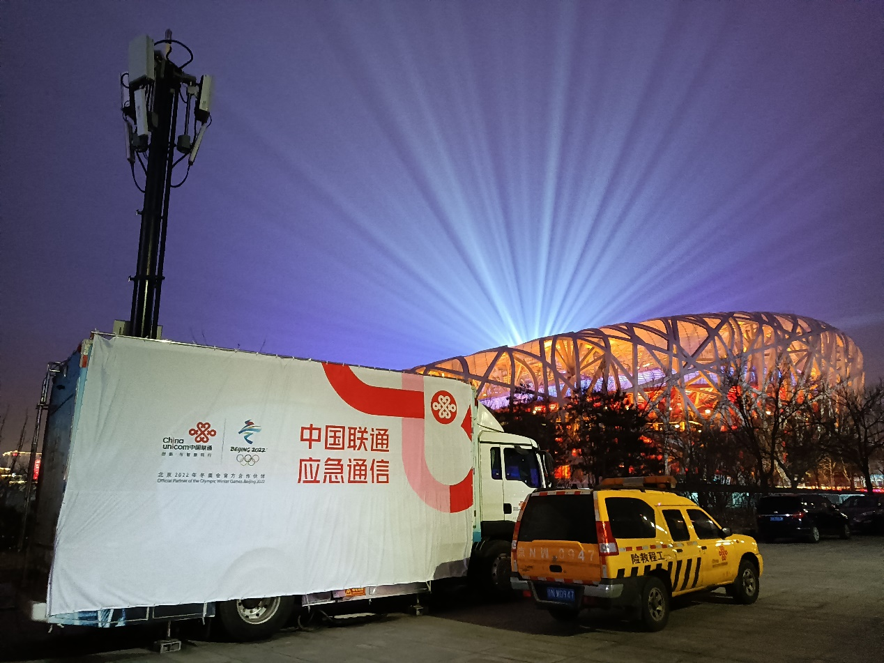 中国联通5G应急通信保障车在鸟巢现场执行北京2022年冬奥会开幕式通信保障工作 李胜军 摄 新华网发