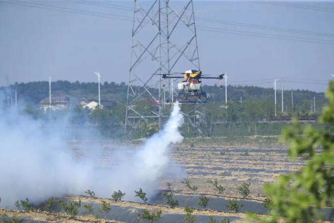 5G无人机在溧水数字农场喷洒药剂