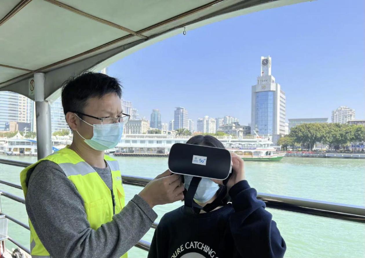 在福建厦门鼓浪屿景区,中国移动福建公司的网络工程师们登上通往鼓浪屿的“鹭江80”客船,开展厦鼓轮渡旅游航线5G网络测试优化。“第一次这样玩游戏,还是在大海上,真是太刺激了!而且网速还特别快!”一位来自山西的游客激动地说道。在福建移动网络工程师的帮助下,这位游客在渡轮上戴着VR眼镜,沉浸式体验了一把5G VR游戏。