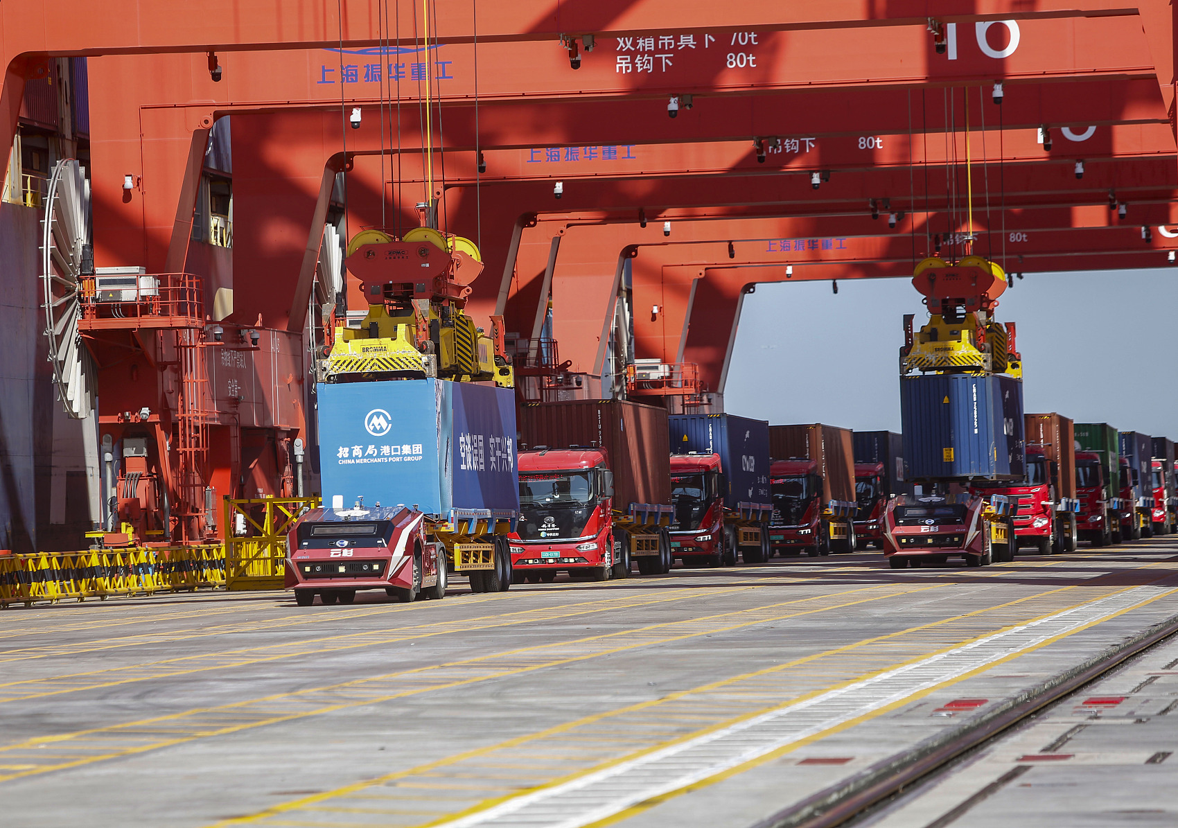 升级改造后带来的效果显而易见,码头作业效率显著提升,岸边、堆场、闸口效率分别提升3%、45.4%、50%,减少操作人员约93人。此外,每年预计减少二氧化氮排放约1350吨,减少一氧化碳排放约450吨,减少二氧化硫排放约15吨。5G技术的应用,降低了港口运输、装卸设备能耗,减少了污染物排放,保护生态环境。