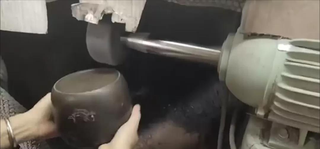 5、打磨:坭兴陶无须添加任何颜料,在烧制过程产生的胎体窑变,经打磨表面氧化层之后,呈现各种色彩斑斓绚丽的图案和纹理,若隐若现古铜、紫红、铁青、金黄、墨绿以等色泽。可谓“火中求宝,难得一件,一件在手,绝无类同”。