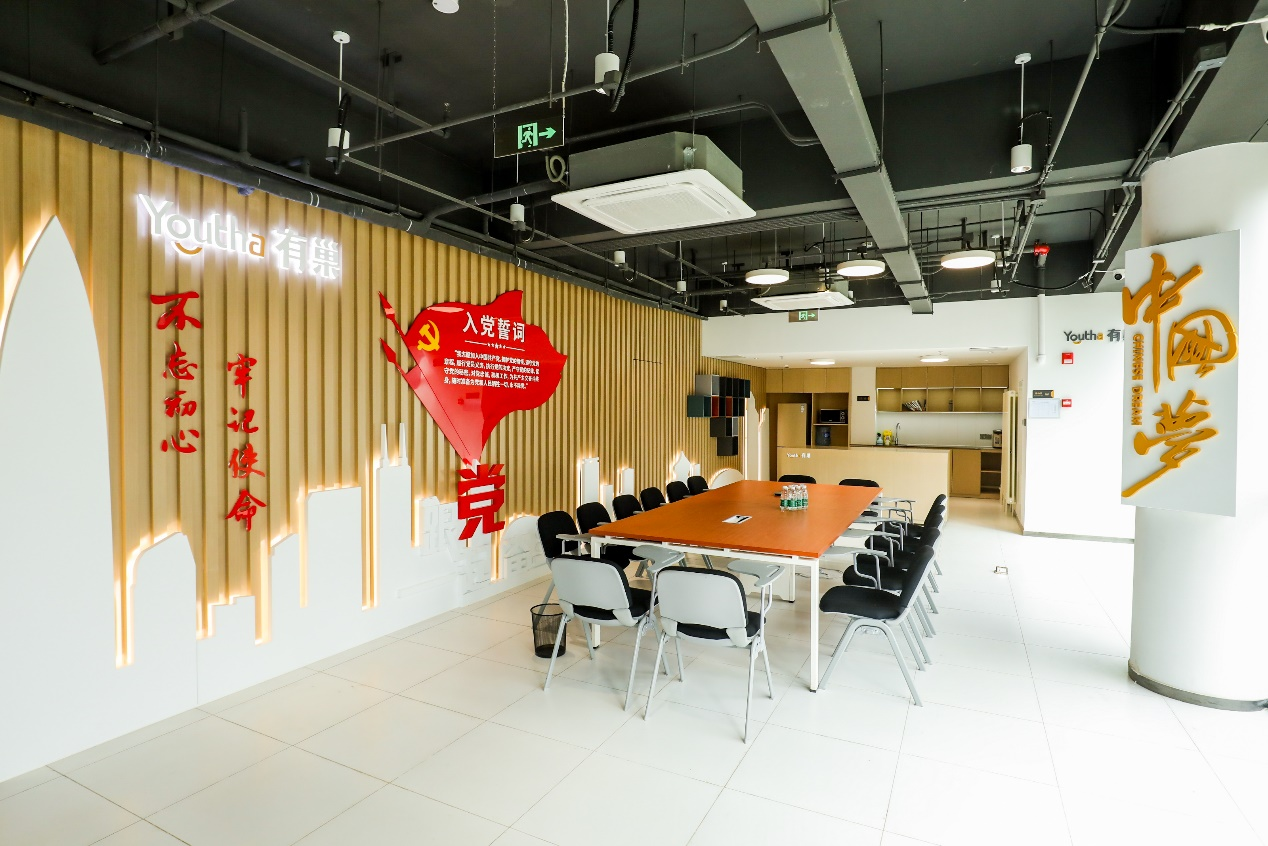 位于有巢国际公寓社区总部基地下沉广场内的党建服务站,整体面积约150平米,设计新颖、功能齐全,明亮宽敞,符合青年人审美,在功能上更是充分满足租客的学习、交流、活动等需求。