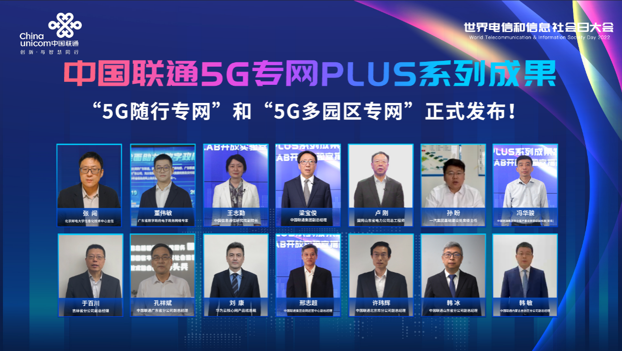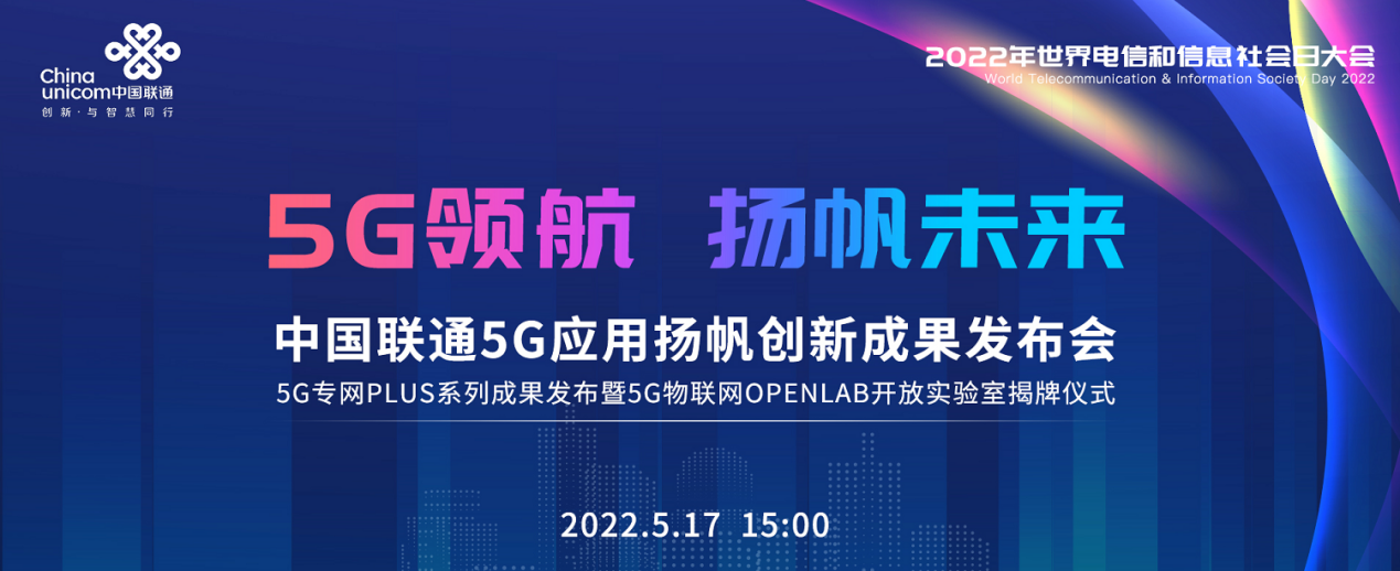 5月17日,在2022世界电信和信息社会日大会期间,中国联通成功举办5G应用扬帆创新成果发布会,携手产业合作伙伴重磅发布5G专网PLUS场景化产品“5G随行专网”和“5G多园区专网”,举行5G物联网OPENLAB开放实验室揭牌仪式,推动5G应用“扬帆”远航。