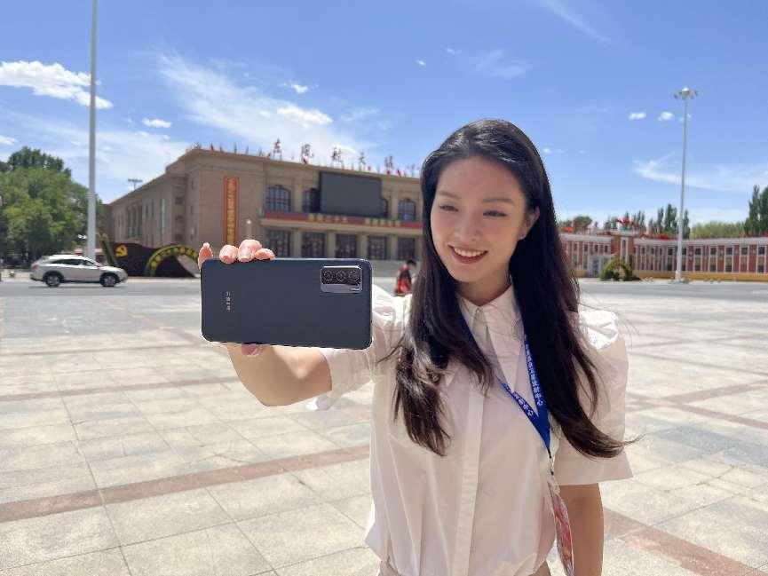 新华网主持人手持神舟十四号报道指定用机天翼1号2022进行现场拍摄