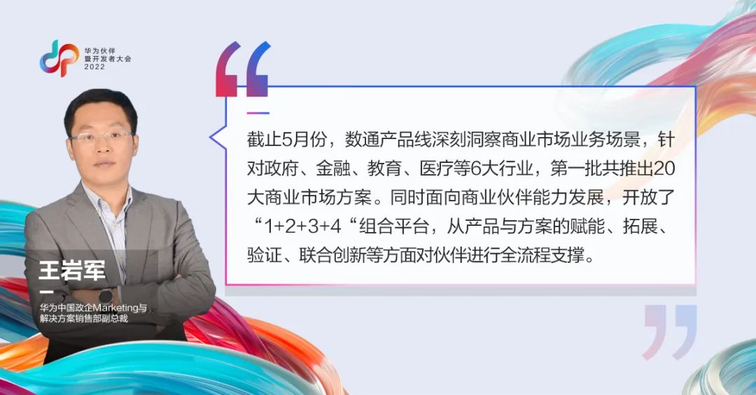 大会期间,华为中国政企Marketing与解决方案销售部副总裁王岩军发布了华为数通面向商业市场新航道所打造的20大场景化方案,下沉地市区县拓展更多行业场景。