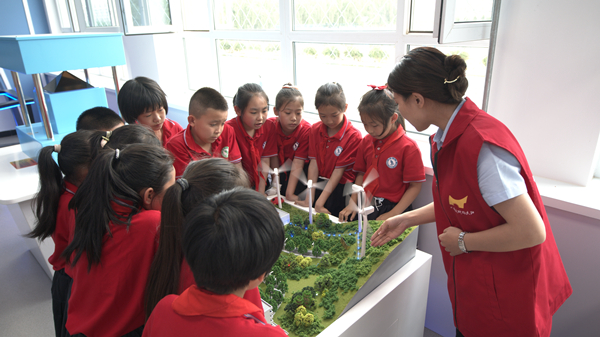 “大家请看,这是输电网,可以把风力转化成电能,源源不断送到我们的学校。”6月30日,在涞源县燕赵学校“未来E站”校园科技实验室内,来自国家电网保定供电公司的青年志愿者教师刘晨站在沙盘模型前,为学生们讲解电网如何将清洁电能输送到千家万户。精致的沙盘模型、生动的讲解,瞬间激发了学生们对风力发电技术的好奇心和学习科学的热情。