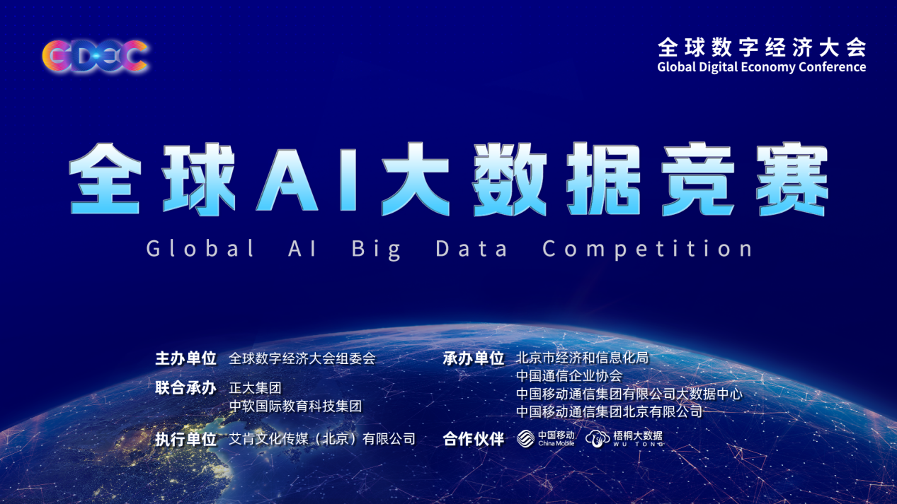 2022全球数字经济大会由北京市人民政府、国家发展和改革委员会、工业和信息化部、商务部、国家互联网信息办公室、中国科学技术协会主办。作为2022全球数字经济大会的重要组成部分,本次大赛由北京市经济和信息化局、中国通信企业协会、中国移动通信集团有限公司大数据中心、中国移动通信集团北京有限公司共同承办,正大集团和中软国际教育集团联合承办,艾肯文化传媒(北京)有限公司作为执行单位。大赛联动国内外知名企业,共建集数据、资源、算力、工具、应用为一体的AI大数据开放平台,释放企业创新需求,与国内外高校、企业建立产学研合作,选拨大数据技能人才和应用成果转化,建立AI大数据领域人才对接交流平台,促进国际AI大数据相关领域开发者的技术交流与项目合作,为各行业注智赋能,共建大数据合作生态。